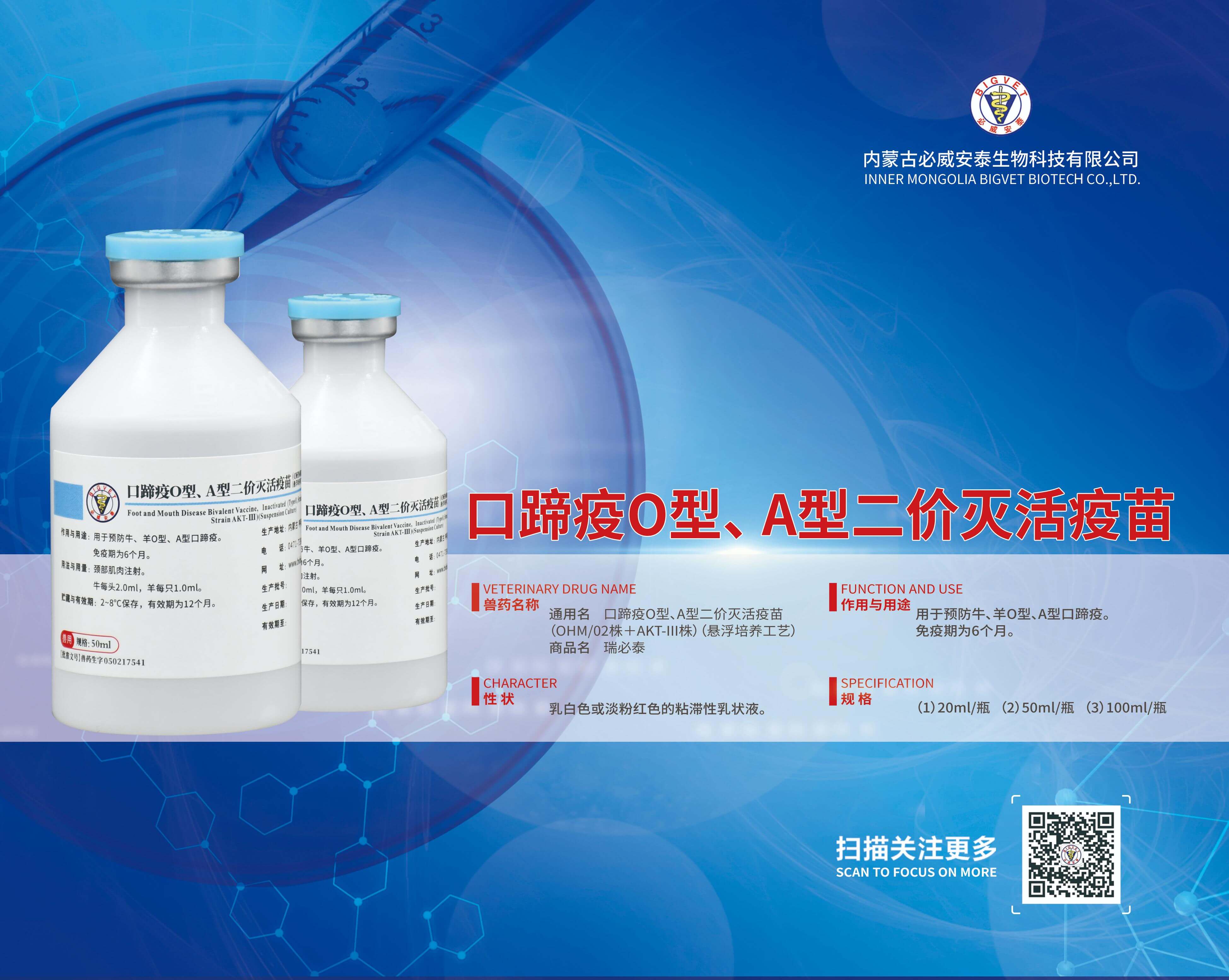 口蹄疫O型、A型二價(jià)滅活疫苗(OHM/02株+AKT-III株)(懸浮培養(yǎng)工藝)