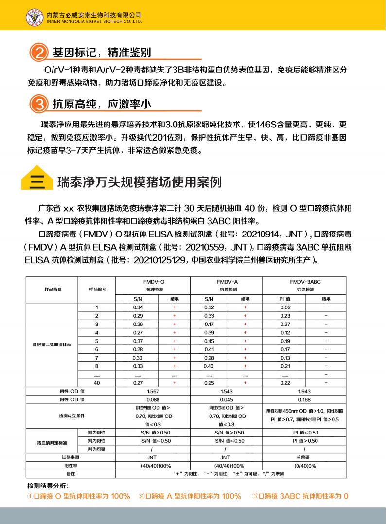 口蹄疫O型、A型二價(jià)3B蛋白表位缺失滅活疫苗(O/rV-1株+A/rV-2株)